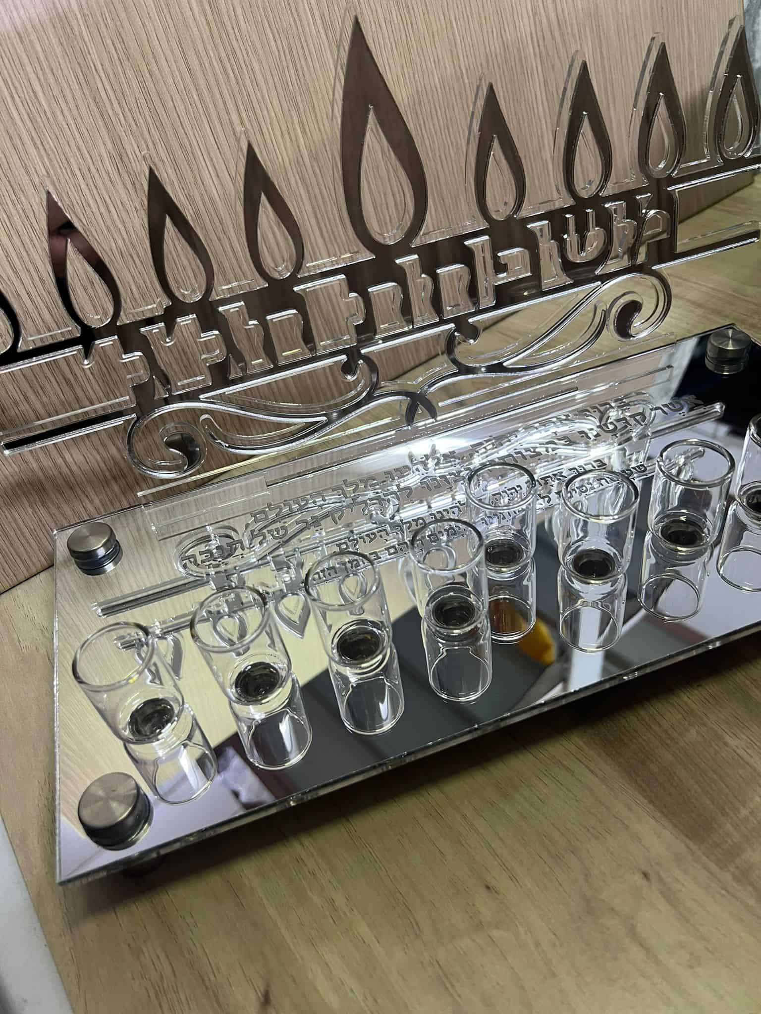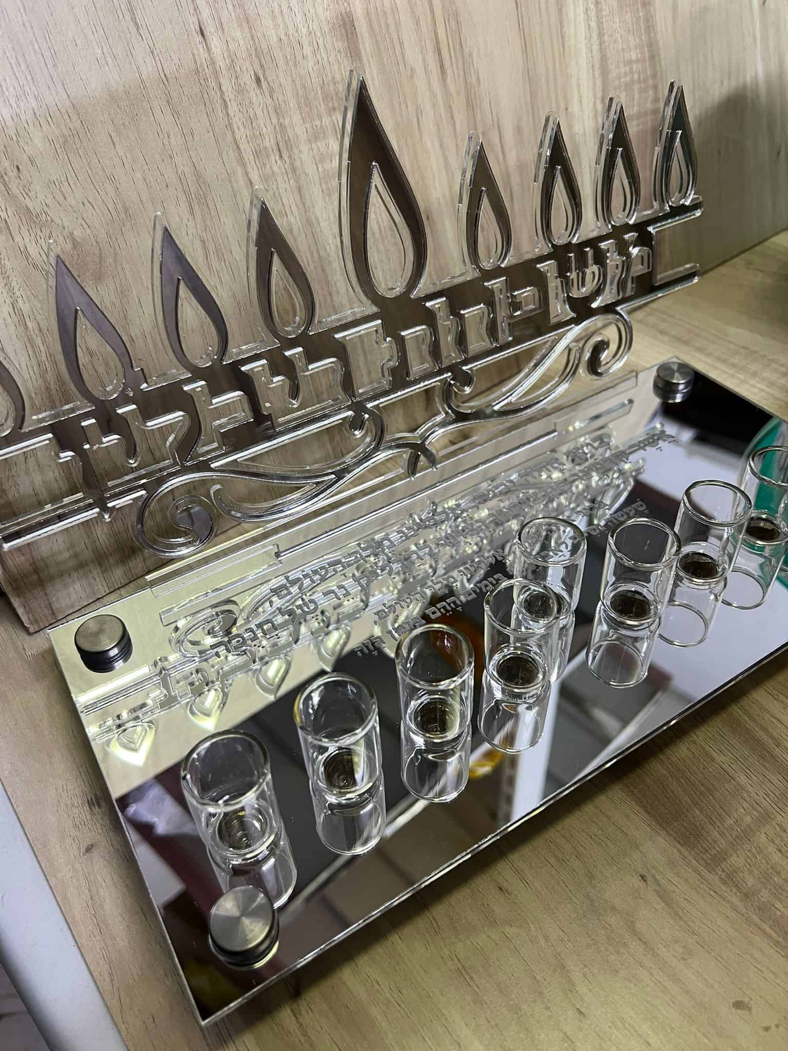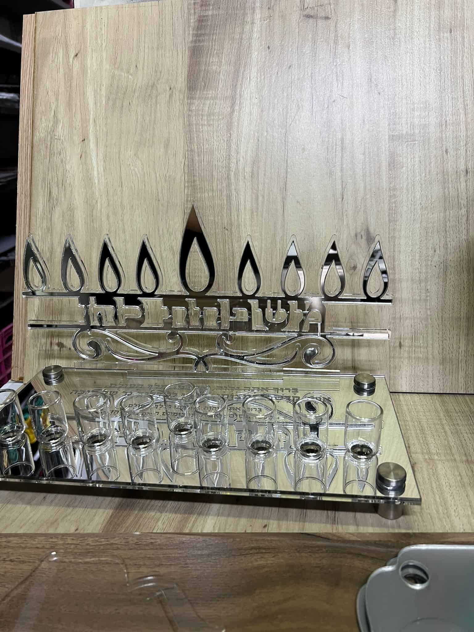 חנוכייה בחיתוך וחריטת לייזר בהתאמה אישית.