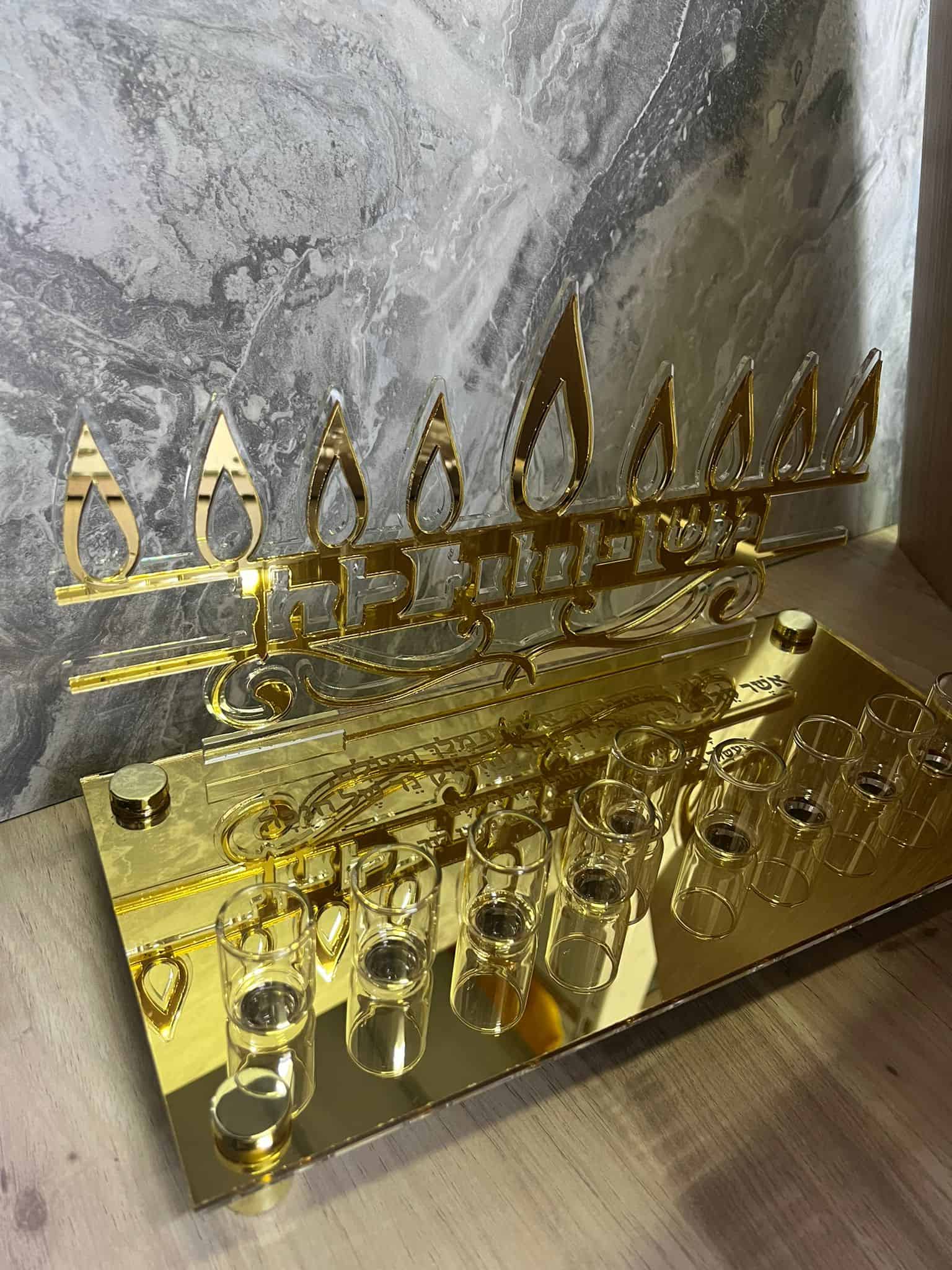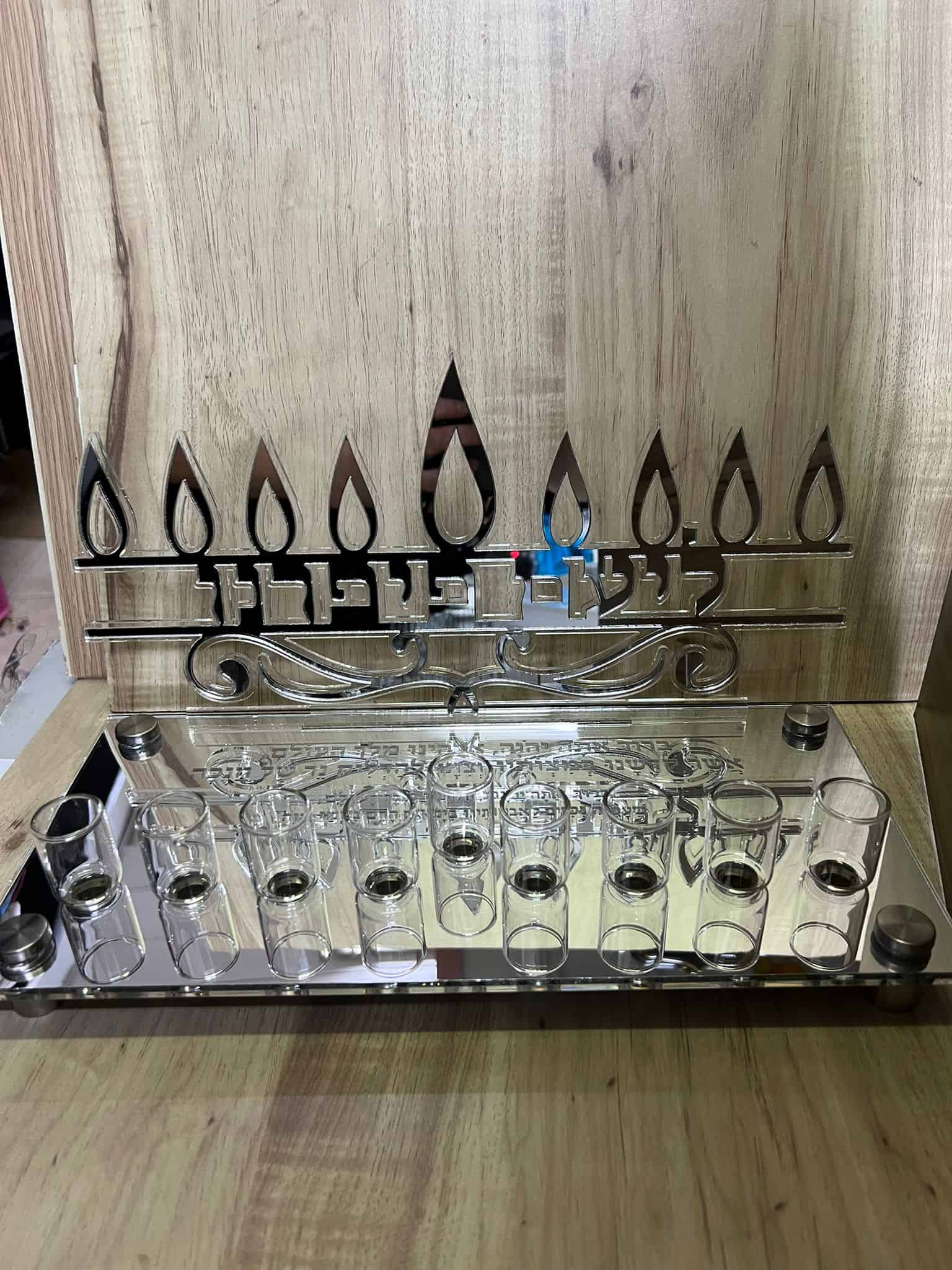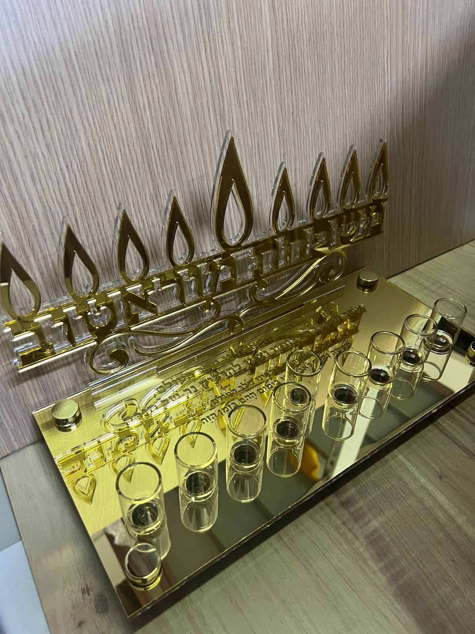 חנוכייה בחיתוך וחריטת לייזר בהתאמה אישית.