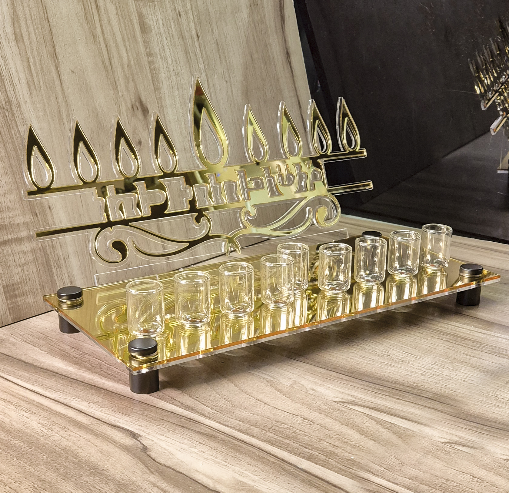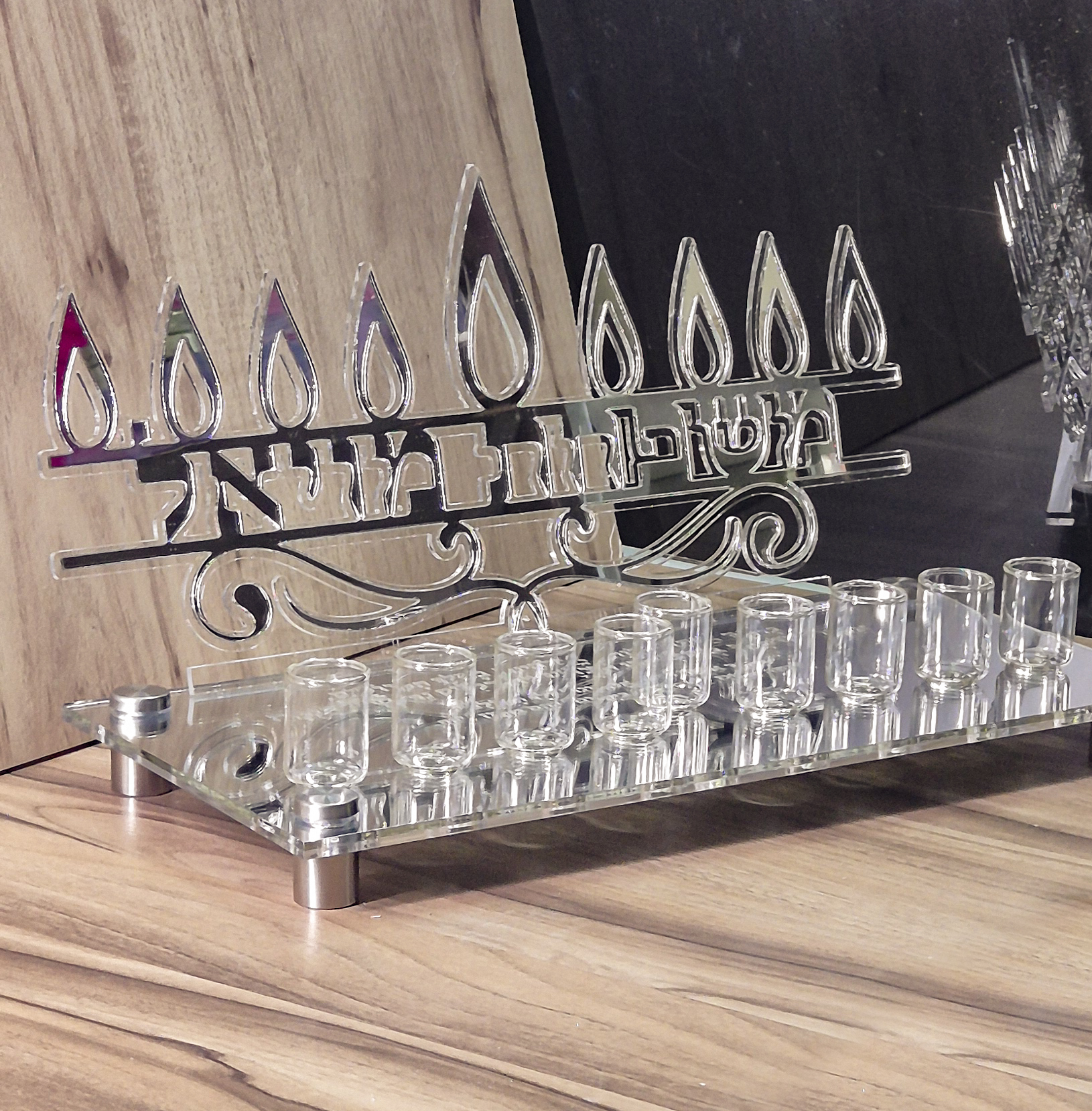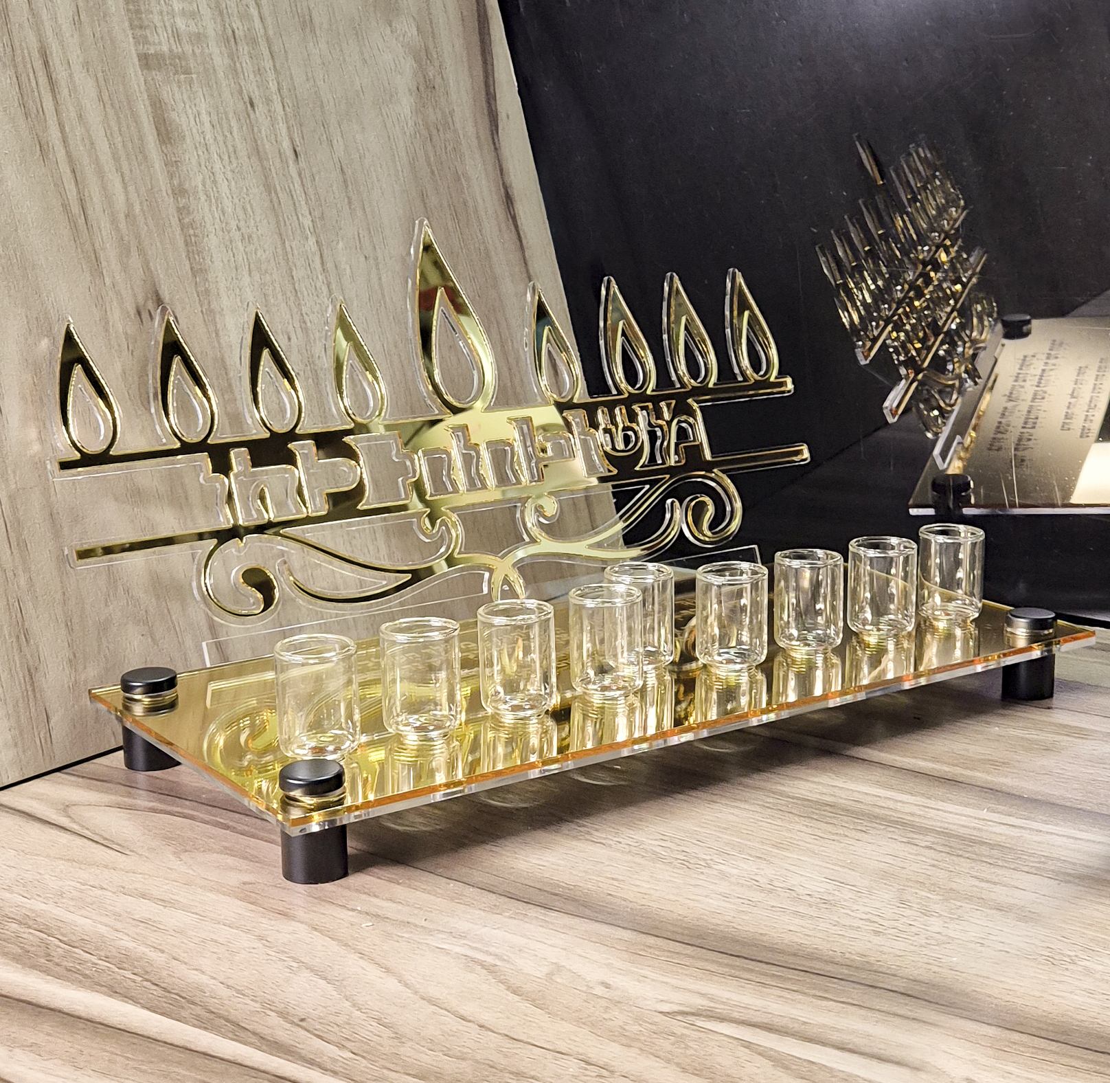 חנוכייה בחיתוך וחריטת לייזר בהתאמה אישית.