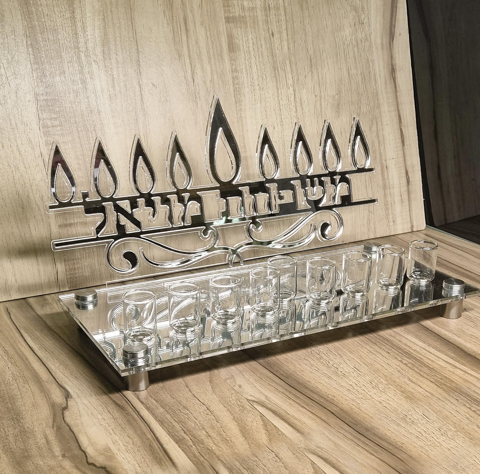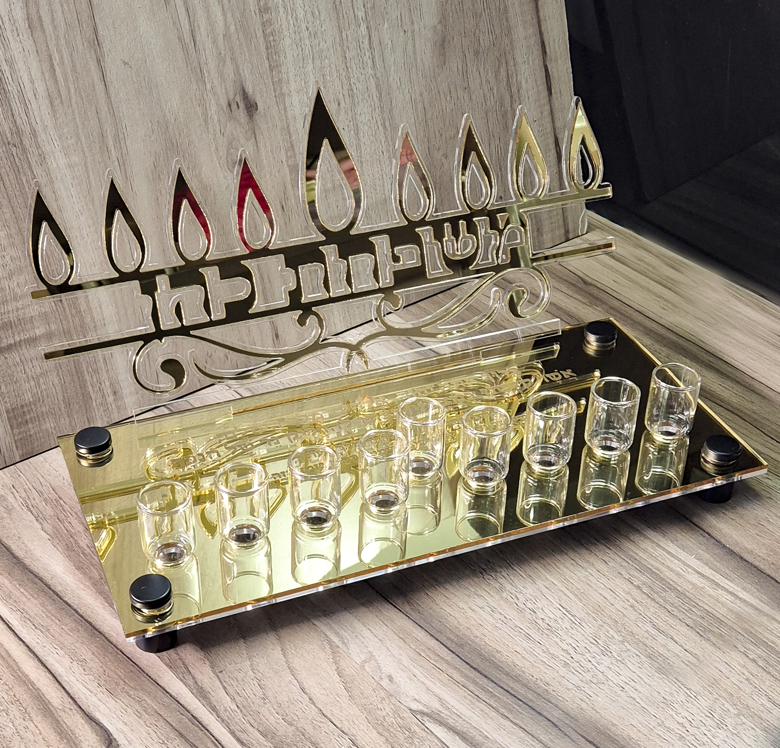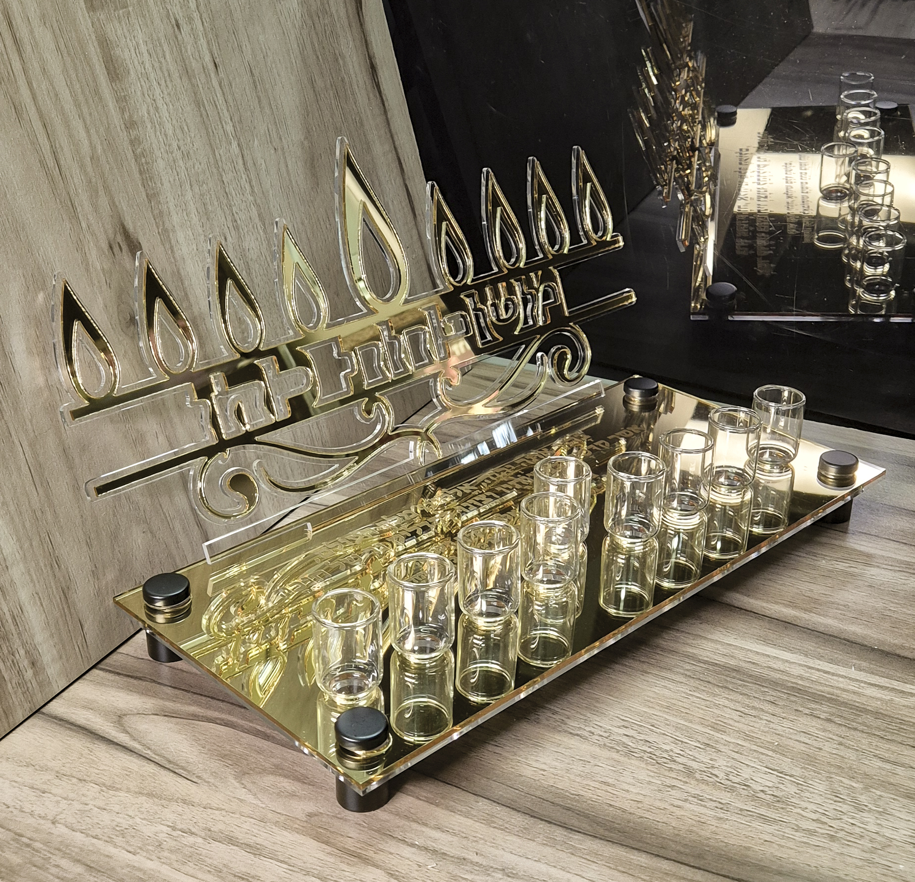 חנוכייה בחיתוך וחריטת לייזר בהתאמה אישית.
